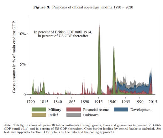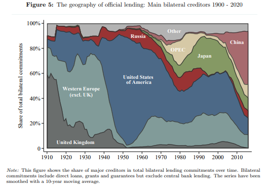 Geopolitical hegemons tend to be the largest official creditors during their respective peaks.